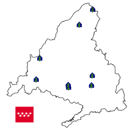 Localización de los ocho centros pertenecientes a la Red de Centros de Educación ambiental (CEA) de la Consejería de Medio Ambiente, Ordenación del Territorio y Sostenibilidad de la Comunidad de Madrid. Estos centros desarrollan programas y actividades de información, sensibilización y educación ambiental con el objeto de alcanzar modelos de desarrollo sostenible, con particular atención sobre aquellas acciones dirigidas a promover el impulso socioeconómico de las poblaciones locales en áreas rurales y naturales. Sirven de apoyo a la gestión del medio y a los planes y demás actuaciones de la Consejería de Medio Ambiente, Ordenación del Territorio y Sostenibilidad, especialmente en los espacios naturales protegidos. Colaboran también con los Ayuntamientos, instituciones y asociaciones de la zona en la que se ubican en la recuperación y valoración de los recursos naturales y culturales, entre otros.