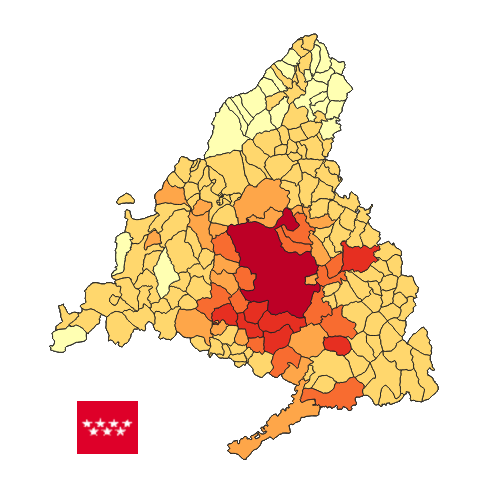 Emisiones GEI (CO2, CH4, N2O y F-gases) para el año 2018 en la Comunidad de Madrid desagregadas por termino municipal y divididas por categoría CRF (clasificación utilizada por UNFCCC). Las emisiones de la Comunidad de Madrid se han obtenido a partir del Inventario de Emisiones de la Comunidad de Madrid. Edición 2024.