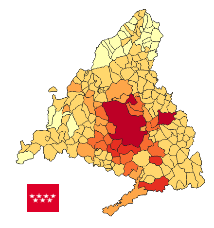 Emisiones GEI (CO2, CH4, N2O y F-gases) para el año 2022 en la Comunidad de Madrid desagregadas por termino municipal y divididas por categoría CRF (clasificación utilizada por UNFCCC). Las emisiones de la Comunidad de Madrid se han obtenido a partir del Inventario de Emisiones de la Comunidad de Madrid. Edición 2024.