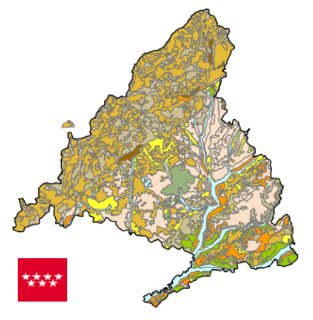 Mapa de Asociaciones de Suelos de la Comunidad de Madrid editado por el antiguo Instituto de Edafología y Biología Vegetal del Consejo Superior de Investigaciones Científicas (CSIC). Elaborado a partir de la recopilación y síntesis del trabajo "Cartografía edafológica y capacidad de uso del suelo de la subregión de Madrid" Comunidad de Madrid, a escala 1:100.000, años 1975 a 1990. Se adaptó a la clasificación de la F.A.O. (1989).